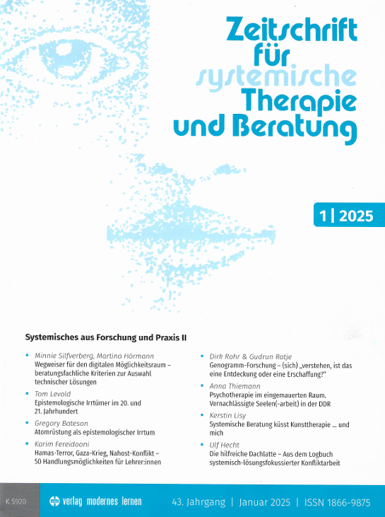 In der „Zeitschrift für Systemische Therapie und Beratung“ habe ich meine Erfahrungen veröffentlicht und die Vorteile einer Kombination von Kunsttherapie und Systemischer Beratung dargelegt.
